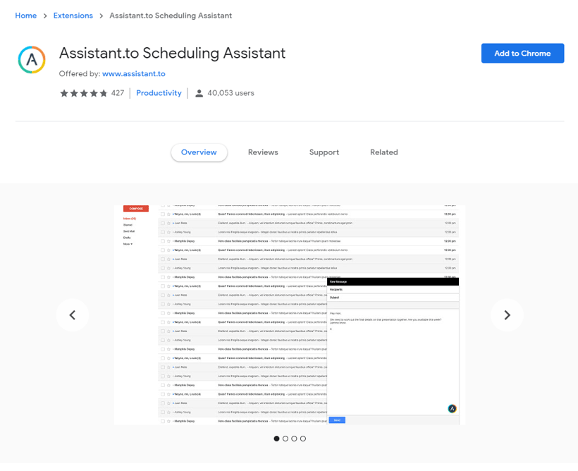 Assistant.to embeds an interactive scheduler directly into Gmail, allowing prospects to select available time slots.
