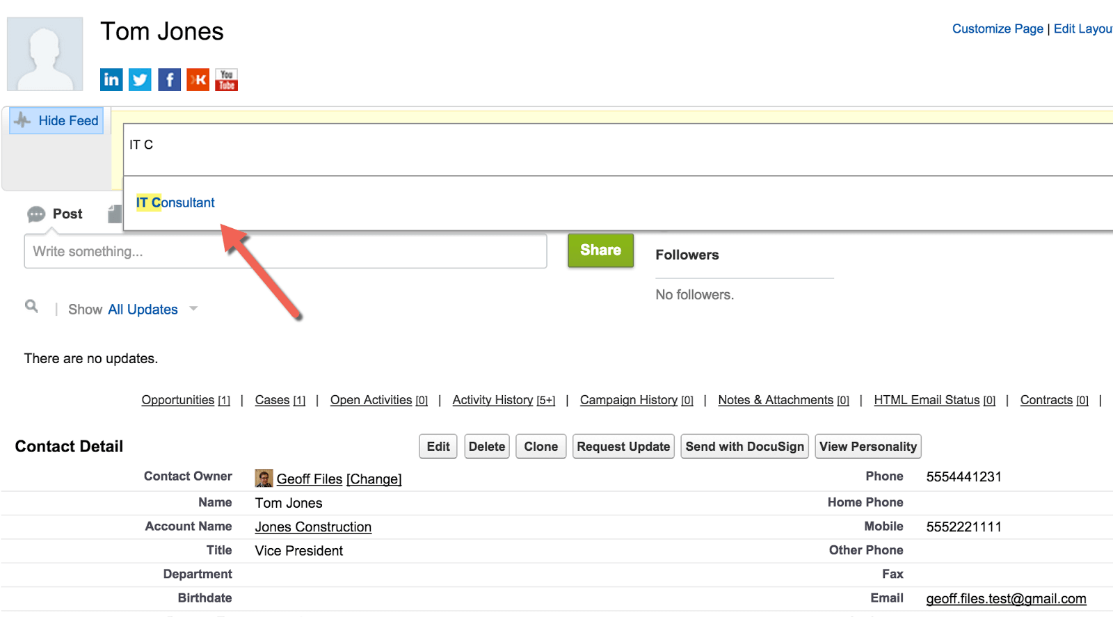 Administrators can enable topics on just about standard or custom object in Salesforce. This allows users to easily mark certain records with a common tag. If I wanted to have a list of ten contacts that are IT Consultants, I can just add that topic to their record: