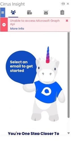 Users may see one of the following messages in the Cirrus Insight sidebar in Outlook: