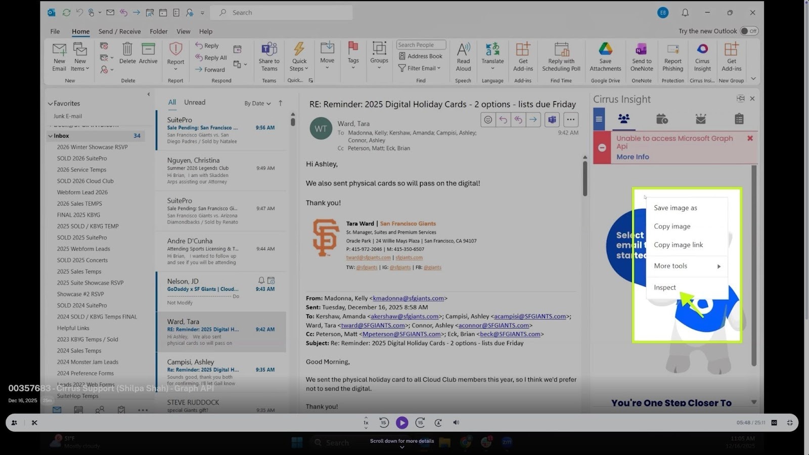 Cause: An outdated Cirrus Insight Outlook add-in that no longer supports current Microsoft Graph API requirements.